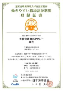 働きやすい職場認証を受けました